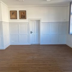 • Die ca. 1,9 m hohe Lamperie (Wandvertäfelung) wurde neu gestrichen.