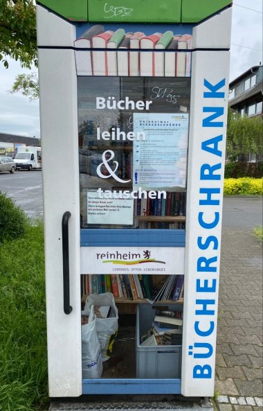 Die Öffentlichen Bücherschränke der Stadt Reinheim laden Sie seit 2016 unter dem Motto „Bücher leihen & tauschen“ dazu ein, in den hier eingestellten Büchern zu schmökern, diese mitzunehmen und auszuleihen oder zu behalten, daraus vorzulesen oder sie zu verschenken, Bücher zu tauschen und einzustellen.