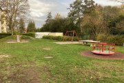 Ausstattung: Sandkasten, Klettergerät, Karussell, Tischtennisplatte, Schaukel, Turmrutschbahn, Wippe