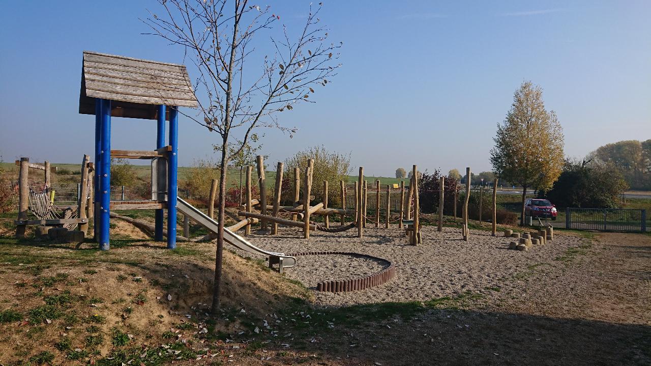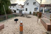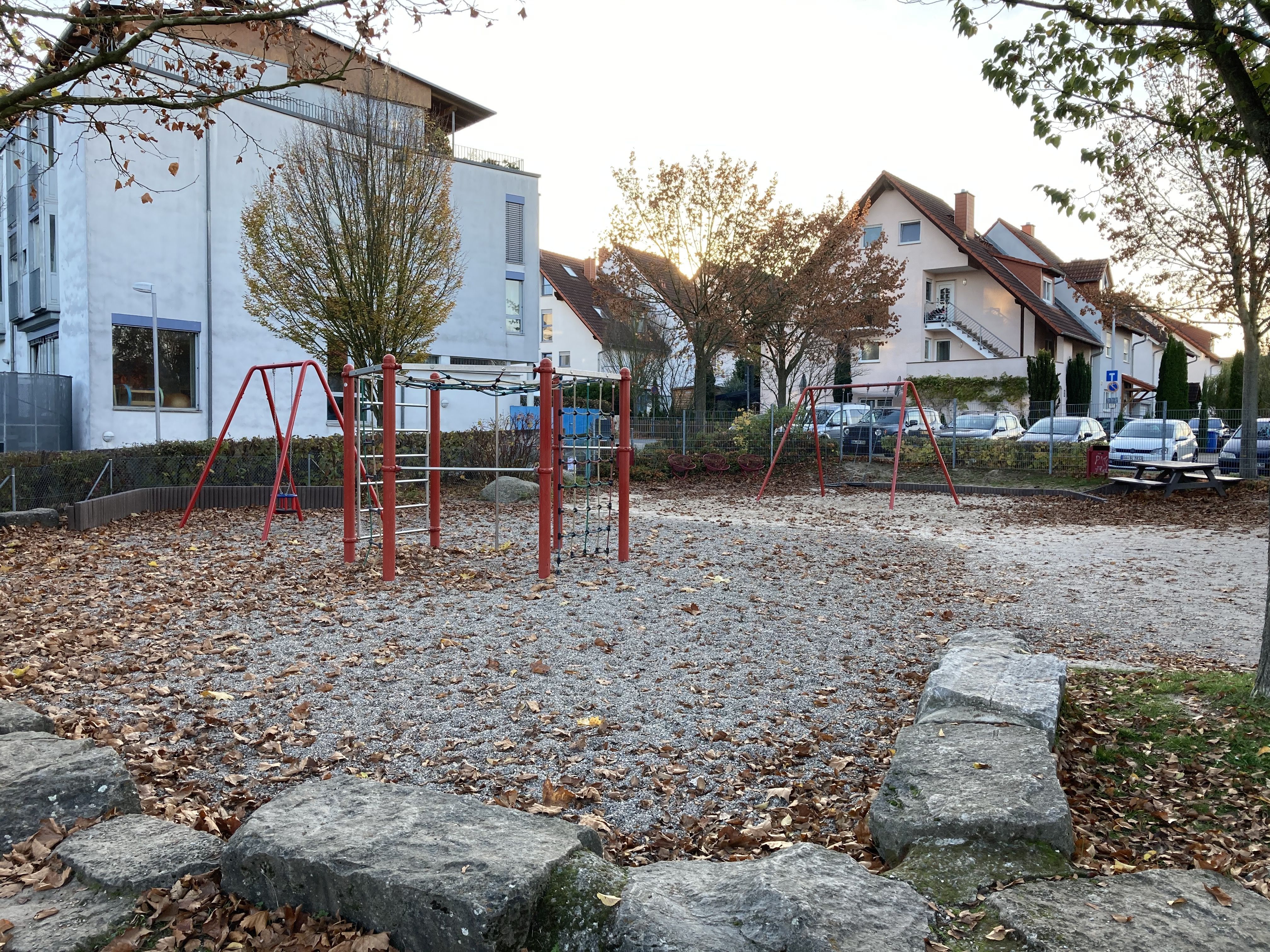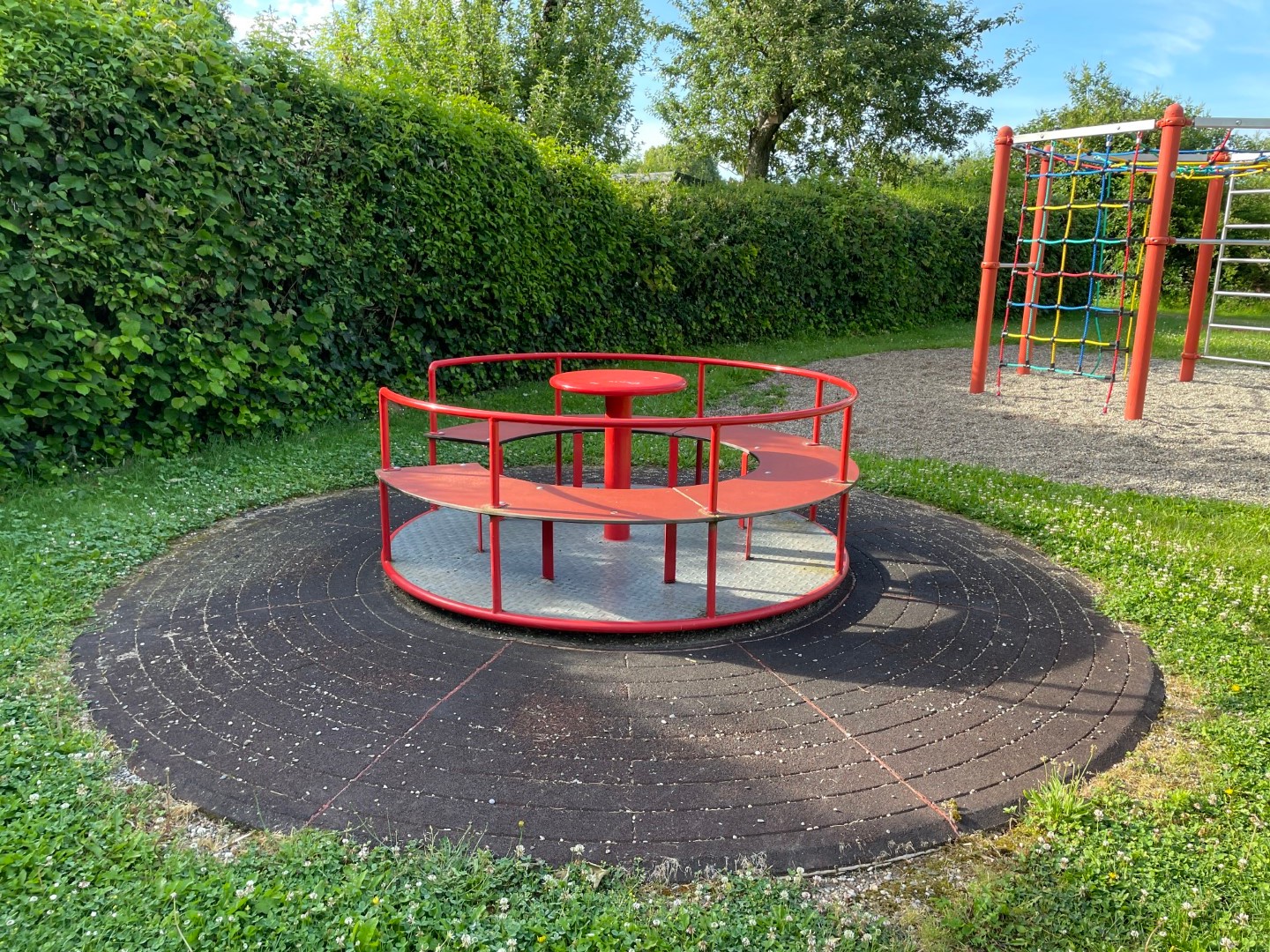 Ausstattung: Sitzgruppe, Sandkasten, Ruschbahn, Tischtennisplatte, Schaukel, Karussell