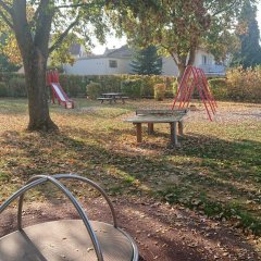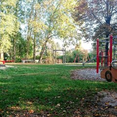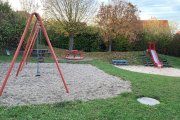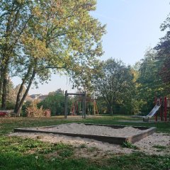Ausstattung: Sitzgruppe, Bänke, Schaukeln, Kleinkindschaukel, Wippe, Tischtennisplatte, Rutschbahn