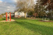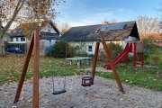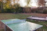 Ausstattung: Sandkasten, Rutschbahn, Schaukel, Wippe, Tischtennisplatte, Tischbank-Kombi