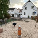 Ausstattung: Sitzgruppe, Sandkasten, Tischtennisplatte, Schaukel, Seilbahn, Wippe, Schaukel klein, Turmrutschbahn