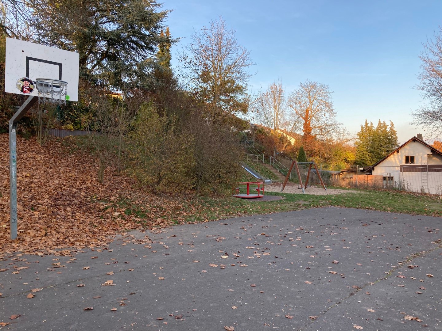 Ausstattung: Tischbank-Kombi, Schaukel, Basketballkorb, Karussell, Seilbahn, Rutschbahn