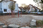 Ausstattung: Torwand, Schaukel, Sitzgruppe, Karussell, Sandkasten, Kletterpyramide, Schwingtiere, Turmrutschbahn