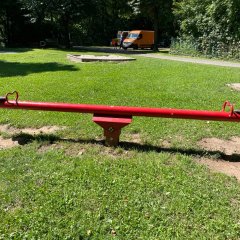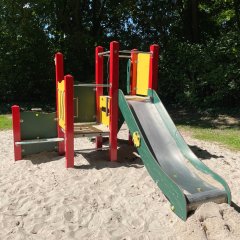 Ausstattung: Turmrutschbahn, Sandkasten, Karussell, Kletterspielgerät, Sitzbankkombination, Wackelbalken