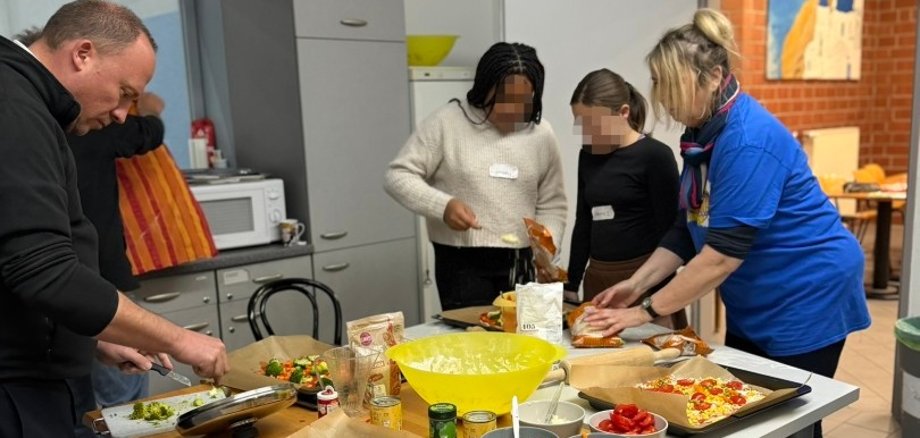 Zwischen Teigkneten, Schnippeln und Würzen entwickelten sich viele Gespräche – ganz ungezwungen und auf Augenhöhe.