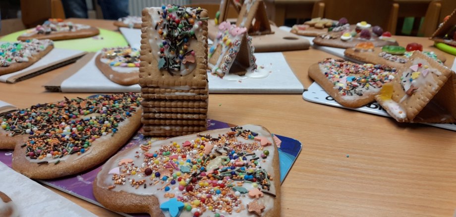 Im Rahmen der Bastelnachmittage konnten die Kinder kreativ werden: Lebkuchenherzen wurden liebevoll dekoriert, und jedes Kind gestaltete ein eigenes Keks-Häuschen. Höhepunkt war der Besuch des Nikolaus am 8. Dezember, der das gemütliche Nikolausfrühstück bereicherte.