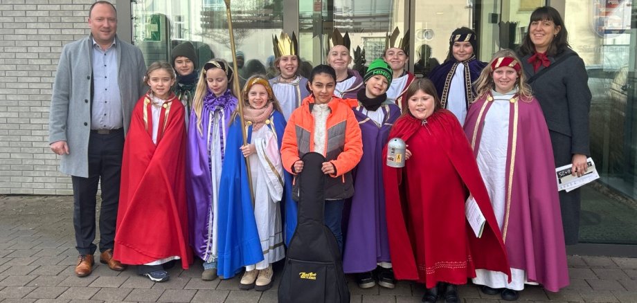 Bürgermeister Manuel Feick und einige Mitarbeitende lauschten den Liedern zu Gitarrenklängen und den Vorträgen. Selbstverständlich gab es noch eine Spende. In diesem Jahr wurde unter dem Motto „Erhebt eure Stimme! – Sternsingen für Kinderrechte“ für Projekte in etlichen Ländern gesammelt. Sie sollen helfen, die Rechte der Kinder Wirklichkeit werden zu lassen.