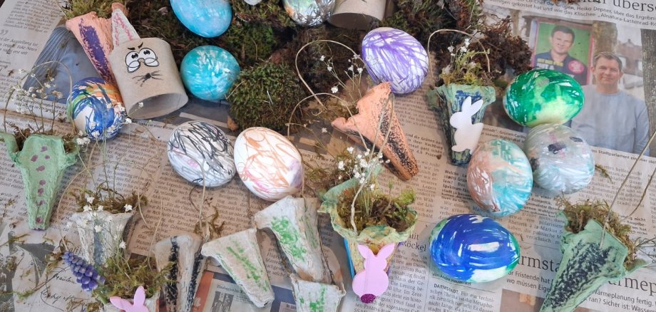 Vor Ort stand vor allem das Miteinander von Jung und Alt im Mittelpunkt. Gemeinsam mit den Klientinnen und Klienten wurde gesungen, gelacht und kreativ gearbeitet. Die Kinder hatten ausgeblasene Eier mitgebracht, die vor Ort bunt gefärbt und liebevoll gestaltet wurden. Darüber hinaus entstanden kleine Blumenkörbchen, für die gemeinsam rund um das Gebäude Moos gesammelt wurde.