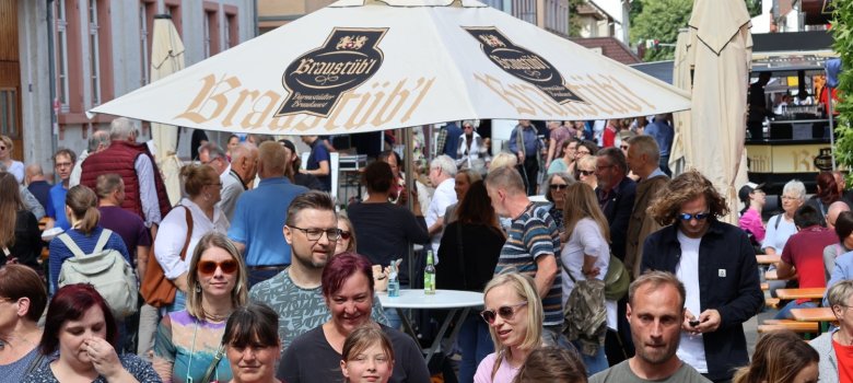 Der Reinheimer Markt findet immer im Juni statt. Dann wird die Hauptschlagader der Stadt zur Flaniermeile - die Darmstädter Straße ist zwischen den Tankstellen und der Einfahrt zur Heinrichstraße für den Verkehr gesperrt.