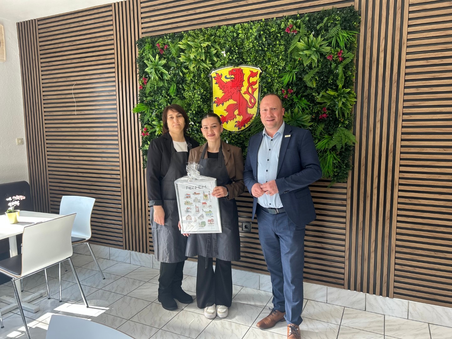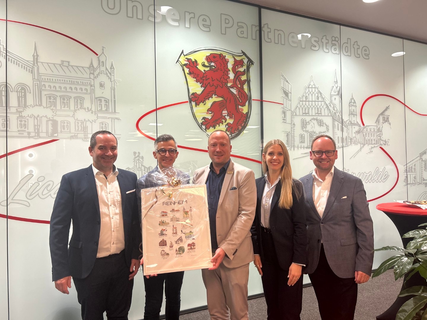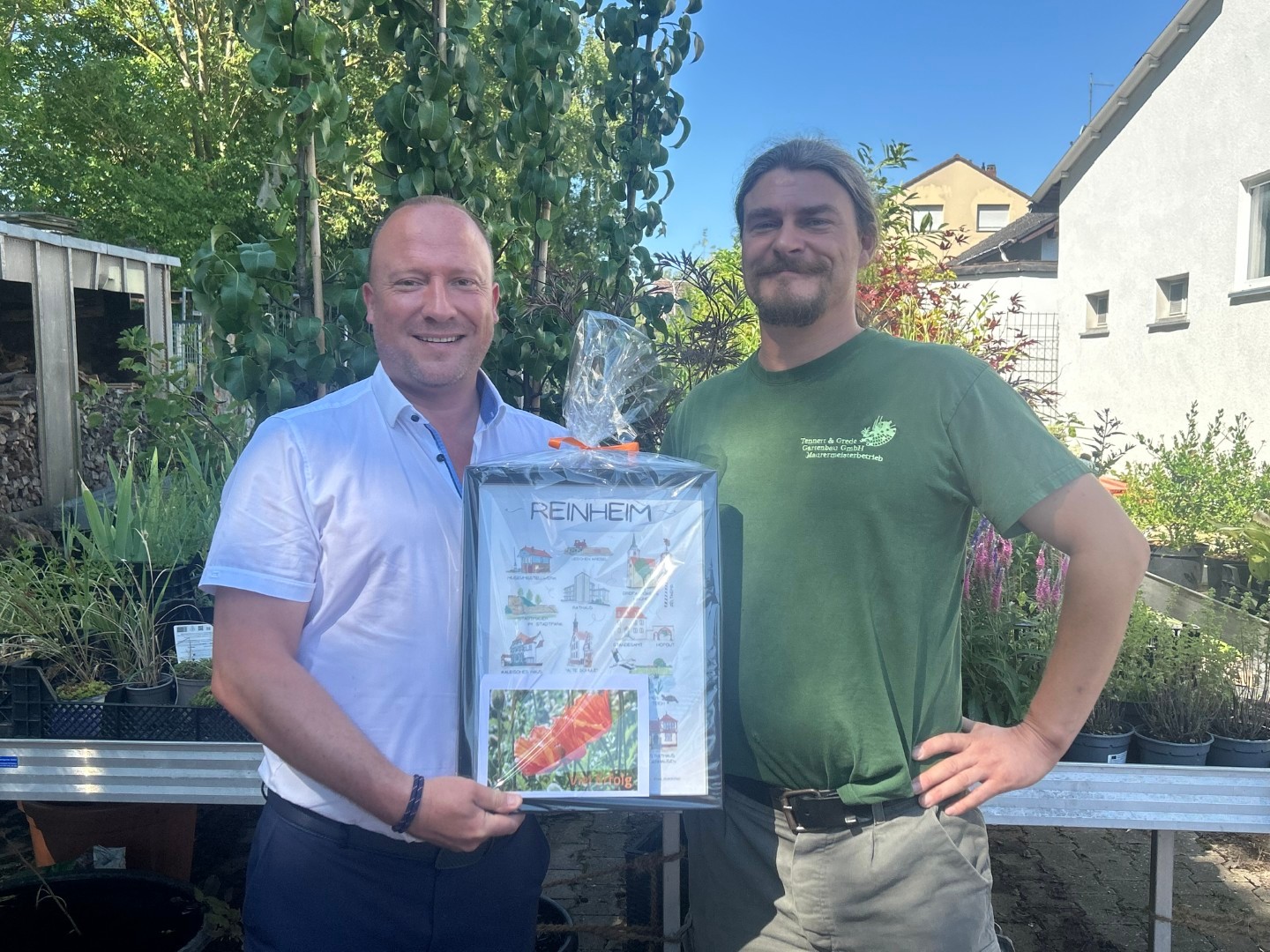 Bürgermeister Manuel Feick und die Wirtschaftsförderin der Stadt Reinheim Grit Schieck besuchen regelmäßig die Gewerbetreibenden in unserer Stadt, beispielsweise bei Geschäftseröffnungen und Firmenjubiläen. Ebenso haben beide ein offenes Ohr für die Anliegen der Gewerbetreibenden und kommen auf Wunsch "auch einfach mal so" vorbei.